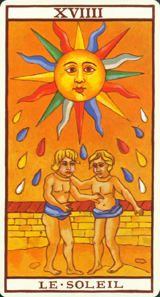 With The Sun the third and final cycle of Tarot is commenced. The first cycle was the upperworld or childphase, a place to start and gain inputs. Here you gained wisdoms, knowledge and ideas. The second cycle was the underworld or adult phase or assignments phase, the hard cycle where you had to really work for gains. This third cycle that starts at The Sun, is the phase of rewards, of enjoyment of results.