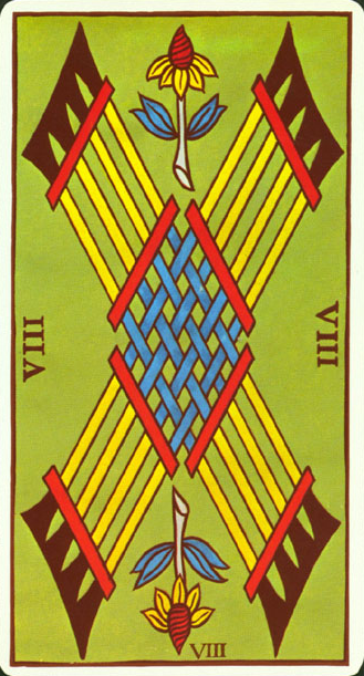 The 8 is the third and last assignment number. The element Fire, associated with Wands, doesn't like assignments much. It prefers to do exactly as it pleases.