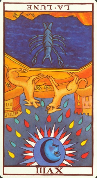 The Hermit, also a 9, closed off the upperworld. The Moon closes the underworld.