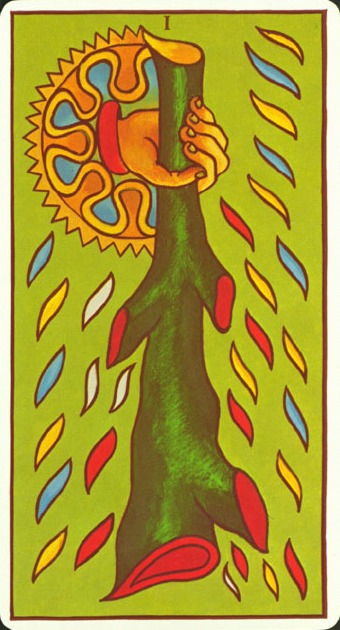 The ace of wands represents the beginning of an idea. The element fire and the number 1 give a powerful combination: enterprise and new beginnings apply to both. This is an energetic combination, which is why the card is generally considered a positive one. Spring is the season associated with this card.