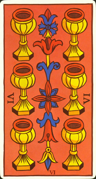The 6 of Cups is about having confidence in something. It is the number of security and harmony. In the suit of Cups this means to be in harmony with yourself.