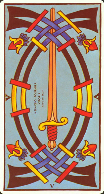 The 5 of Swords is about facing reality. The 5 is an assignment number, and in the slighly more difficult suit of Swords, it means you face a difficult challenge where your past experiences could hold you down.