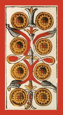 The 8 of Swords is about slowly regaining strength and energy. The 8 is an assignment number, and in the element of Swords it's a bit harder than usual.