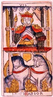 During the prevous card, The Lovers, all the wisdom of the first cards in the deck has been processed and a choice was made for personal growth. Now it's time to do something with all this baggage, to actually travel the road. A lot has been done so far, wisdoms have been accumulated and integrated into one's personality.
