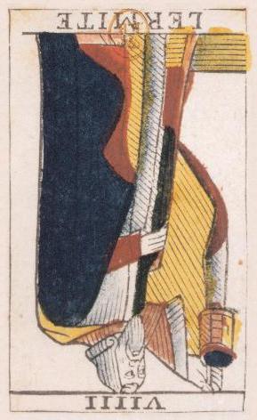 The Hermit shuts out the world and retreats into solitude to better understand some spiritual aspect of life. He opens to the cosmos and lets it's wisdom sink in. Hermits are often seen as wise old men who can guide a traveller along a journey.