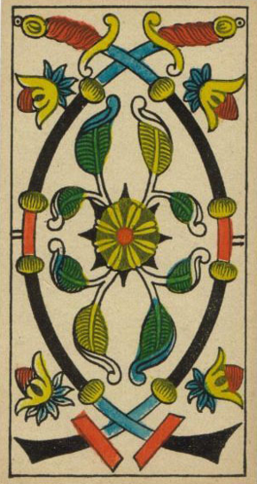 When this card falls, it might serve to point your attention to whatever is new and fresh in your life; a new job, study, love relation, business relation, project, etc. Look to the other cards in the reading to see what more can be said about it.