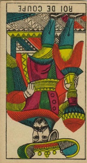 The King of Cups uses his intuition to achieve his ideals. Since Cups are turned inward, and Kings turned to the outside world, this card might be a difficult one, or it could be a powerful one.