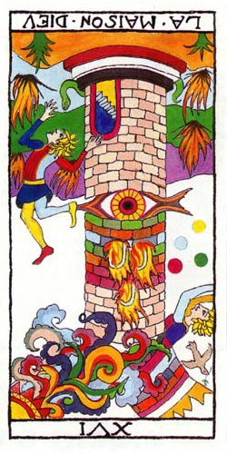 The card of The Tower goes by different names in different Tarot games. Some call it The Tower of Destruction, or The House of God, or Tower of the Light.