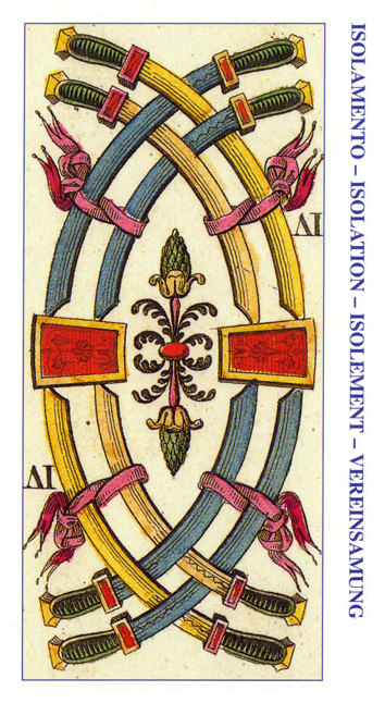 The number this card carries is 15, composed that is 6. The resemblances to the first '6' card (The Lovers) are remarkable; in both cards security is a central theme.