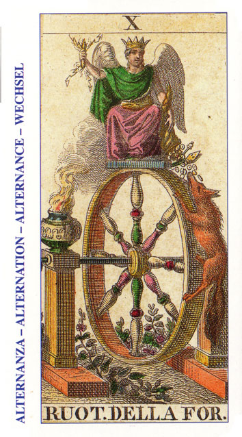 With the Wheel of Fortune, the second major cycle of Tarot commences. The first cycle in the first cards of the deck was about development as a child, accumulating wisdoms and integrating them into your personality. This second cycle is about your development as an adult. It is a more demanding cycle. You'll have to see if you can face what the world throws at you.
