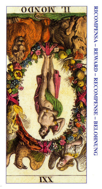 The World carries the number 21. As a composed number that is 3. The World is the third 3 in the Major Arcana. 3 is a reward number, so the third 3 must be even more powerful.