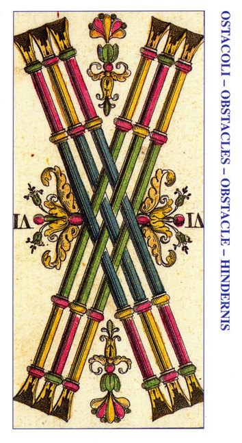 The 2 of Wands represents the research and digestion of a new idea. The number of this card and it's element are somewhat in conflict; while the 2 is focussed inwards, the Wand's element fire is outgoing. Fire wants to steam ahead while the blackbox 2 asks for patience.