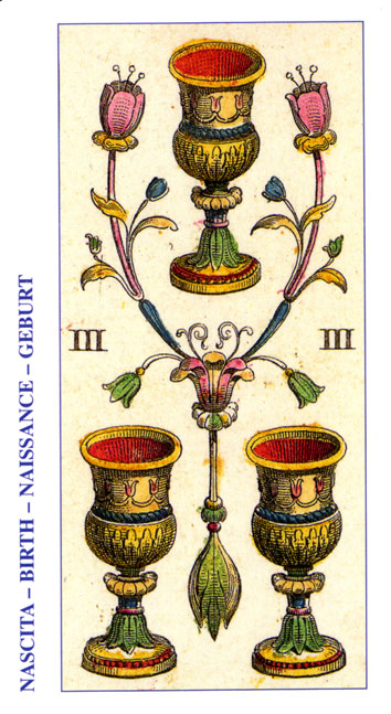 The 3 of Cups represents hope, faith and love. The 3 is a reward number and in this suit of Cups your feelings during that number will be that of joy and self-contentment.