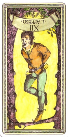 First you learned that you're not a plaything of fate, that you can make your own choices. Then you've learned how to fend for yourself and face yourself. Now, at The Hanged Man, you can learn to let go. You no longer have to cling to old values. You've found strength in yourself and by letting go, you allow growth.