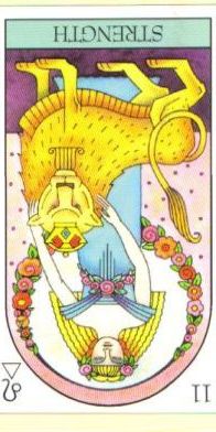 This card carries the number 11. In the Rider-Waite deck, Strength and Justice have swapped places because Waite saw links with the astrological signs Leo and Libra.