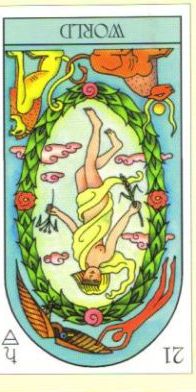 The World carries the number 21. As a composed number that is 3. The World is the third 3 in the Major Arcana. 3 is a reward number, so the third 3 must be even more powerful.