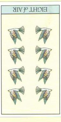 The 8 of Swords is about slowly regaining strength and energy. The 8 is an assignment number, and in the element of Swords it's a bit harder than usual.