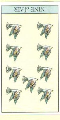 The 9 of Swords represents relief from cropped-up grief. The number 9 is a number of reward and rest and accomplishment. In the element of Swords there is not a lot of time for rest, but without any rest you'd just burn yourself out.