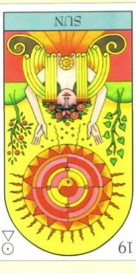 The Sun carries the number 19, a composed value of 1. This is the third composed 1 in the Major Arcana. It's the culmination of the 1's. The third 1 is a reward and a beginning at the same time. It also represents creative energy.