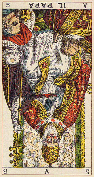 Where The Emperor is the chief of worldly power, The Hierophant is the head of spiritual matters.