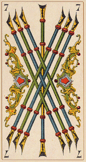 With the 7 of Wands, the striving cycle starts. It is about having the determination to complete your ideas, despite the fact that that might cause you some discomfort.