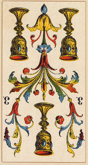 The 3 of Cups represents hope, faith and love. The 3 is a reward number and in this suit of Cups your feelings during that number will be that of joy and self-contentment.