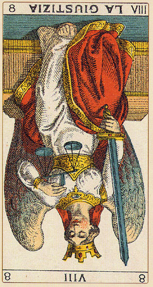In the Rider-Waite deck, the cards for Justice and Strenght have swapped places, because Waite saw links between the cards and the astrological signs Leo and Libra.
