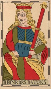 The Queen of Wands is drawn when you (have to) become more aware of the properties of the Wands suit; vitality, optimism and enthousiasm.