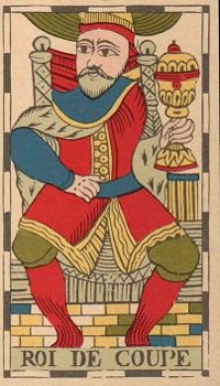 The King of Cups uses his intuition to achieve his ideals. Since Cups are turned inward, and Kings turned to the outside world, this card might be a difficult one, or it could be a powerful one.