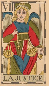 In the Rider-Waite deck, the cards for Justice and Strenght have swapped places, because Waite saw links between the cards and the astrological signs Leo and Libra.