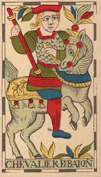 The Knight of Wands likes action and progress, but isn't too concerned with the usefulness of his actions or the ramifications to those around him.