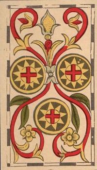 The number 1, associated with this Ace card, is the number of a fresh start with yet more new impulses coming your way. It might be compared to The Fool, the first card of the major arcana.
