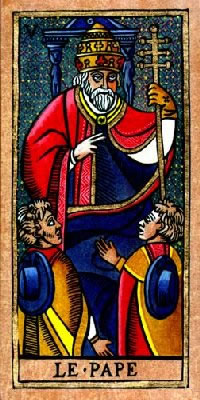 Where The Emperor is the chief of worldly power, The Hierophant is the head of spiritual matters.