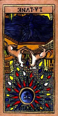 The Hermit, also a 9, closed off the upperworld. The Moon closes the underworld.