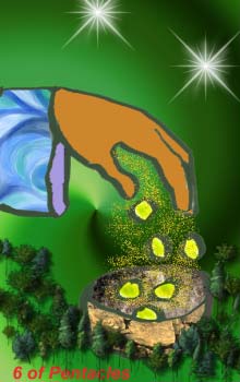 The 6 of Pentacles signals that help has arrived or will arrive soon. The number 6 represents security and reward. In the Earth element attached to Pentacles, this means material rewards are likely coming your way.