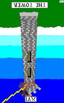 The card of The Tower goes by different names in different Tarot games. Some call it The Tower of Destruction, or The House of God, or Tower of the Light.