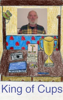The King of Cups uses his intuition to achieve his ideals. Since Cups are turned inward, and Kings turned to the outside world, this card might be a difficult one, or it could be a powerful one.
