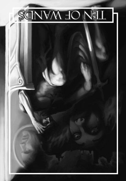 The 10 of Wands is therefore the transition from the element Fire (associated with Wands) to the element Water, associated with Cups. As you might imagine, this not the easiest of transitions.