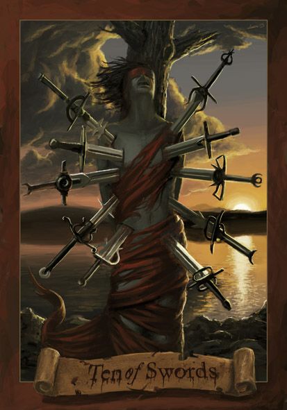The 10 of Swords is about saying final goodbye to things or people that are bad to you.