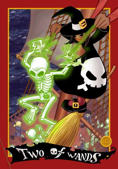 The 2 of Wands represents the research and digestion of a new idea. The number of this card and it's element are somewhat in conflict; while the 2 is focussed inwards, the Wand's element fire is outgoing. Fire wants to steam ahead while the blackbox 2 asks for patience.