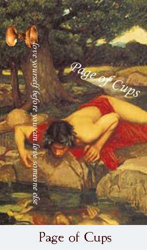 The Page of Cups is about cautiously exploring your own emotions (about the course ahead).