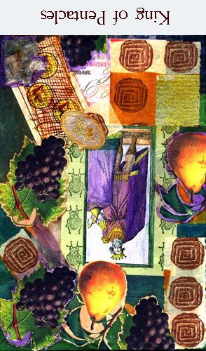 The King of Pentacles uses his Earthly attributes to rule. He goes about his work like an old style business man; he avoids unnecessary risks, aims for real results, and acts from confidence.