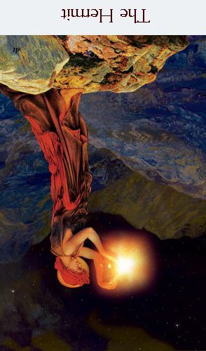 The Hermit shuts out the world and retreats into solitude to better understand some spiritual aspect of life. He opens to the cosmos and lets it's wisdom sink in. Hermits are often seen as wise old men who can guide a traveller along a journey.