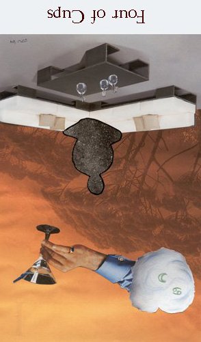 With the 4, the second cycle of this suit is commenced, where a choice between structure and feeling has to be made, where old securities have to be let go of to work towards a new future. But like Wands, Cups don't like structure much, they prefer to be free and dream rather than to make commitments and go for something.