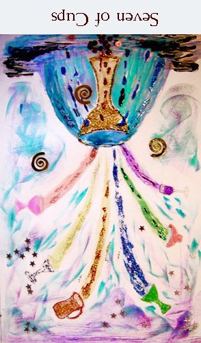 The 7 of Cups is about making a choice between different ideals. But Cups, with the water element, don't like making definitive choices that much, making this 7 in this suit a bit of a hard choice.