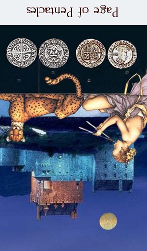 Pages explore and gather information about the road ahead, with an almost naive attitude. The Page of Pentacles is sometimes described as a bridge builder; Pentacles is the suit where the actual work is done, and the Page here enables those that follow to quickly cross difficult terrain.