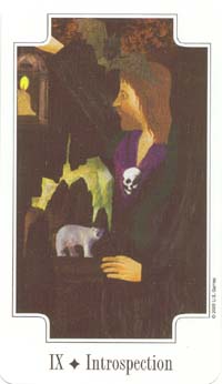 The Hermit carries the number 9. This is the highest base number. After 9 the composed numbers emerge. Therefore the number 9 is the gateway to a higher order. It is also a place to rest before embarking on the next leg of the journey.
