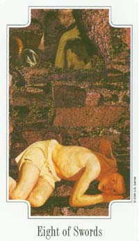 The 8 of Swords is about slowly regaining strength and energy. The 8 is an assignment number, and in the element of Swords it's a bit harder than usual.