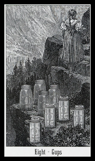 8 is an assignment number, and in the suit of Cups, it is about overcoming the urge to sink into depression caused by view on the long road ahead.