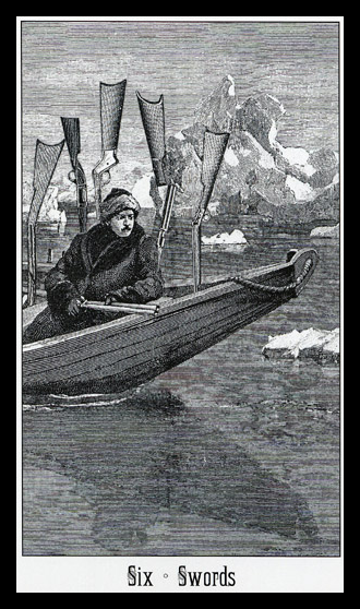 The 6 of Swords is a reward number after the hard assignment in 5 of Swords, it brings you to a safe place to rest a bit.